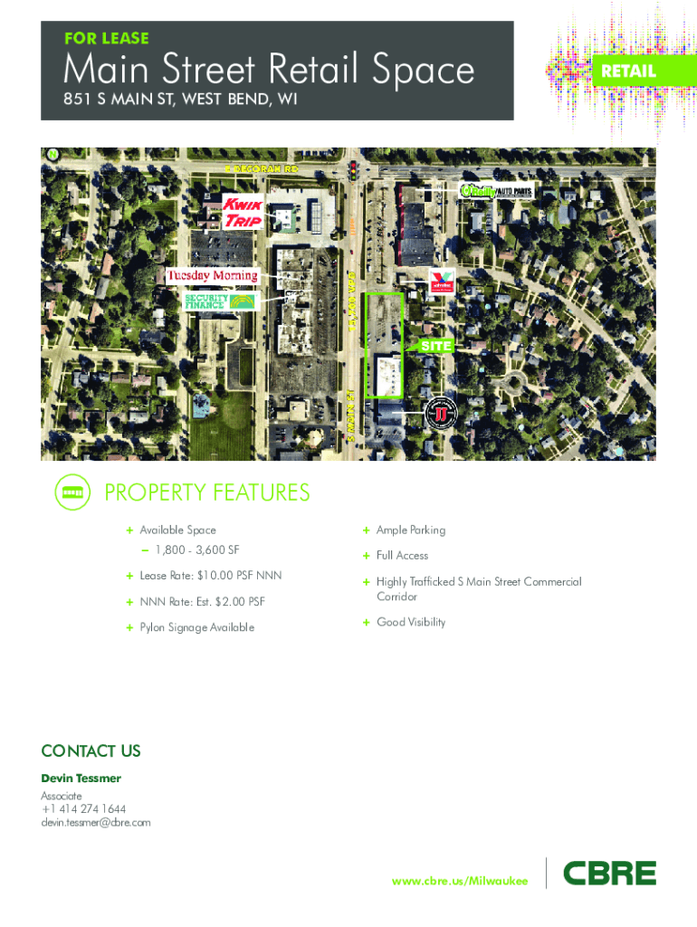 FOR Baseman Street Retail Space 851 S MAIN ST, WEST BEND, PROPERTY FEATURES + Available Space 1,800 3,600 SF + Lease Rate: $10.00 PSF NNN+ Ample Parking + Full Access+ NNN Rate: Est. $2.00 PSF+ Highly