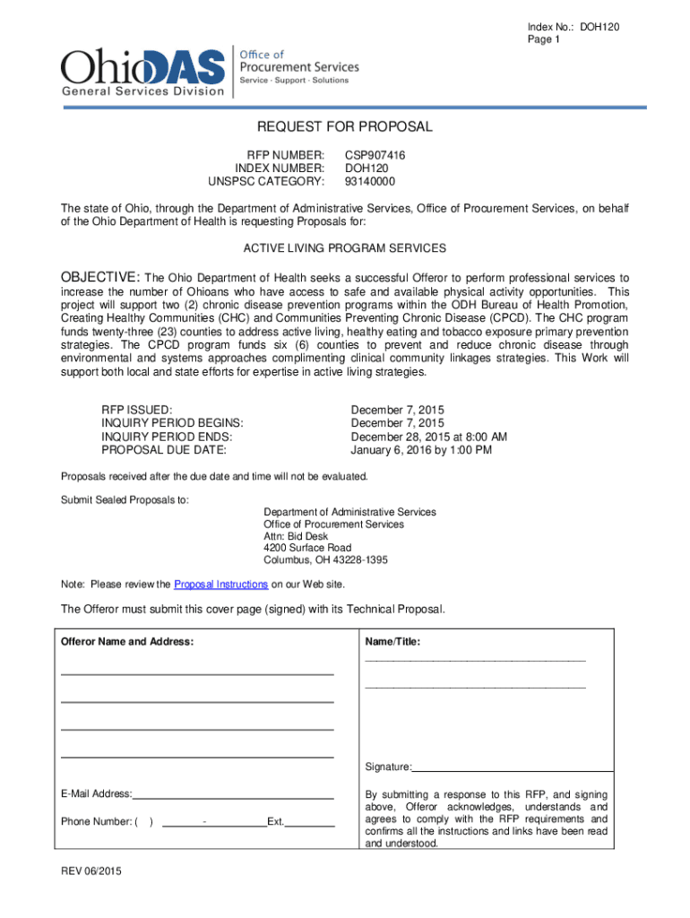 Index No.: DOH120 Page 1REQUEST FOR PROPOSAL RFP NUMBER: INDEX NUMBER: USPS CATEGORY:CSP907416 DOH120 93140000The state of Ohio, through the Department of Administrative Services, Office of Procurement
