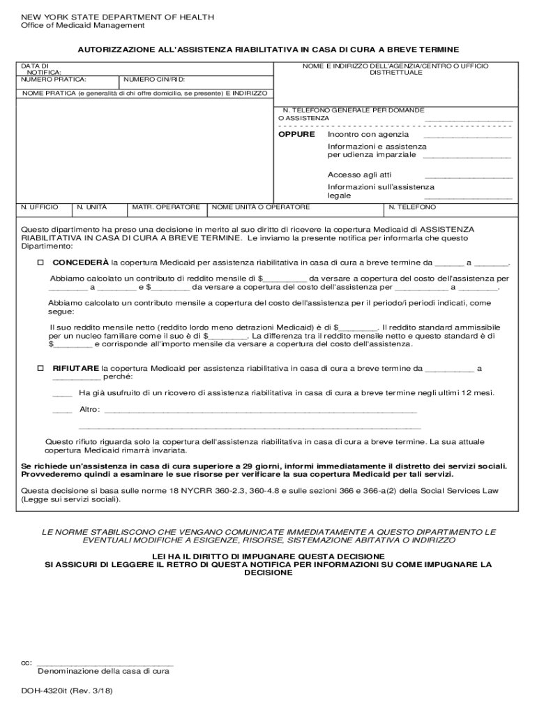 Office of Medicaid ManagementAUTORIZZAZIONE ALL\'ASSISTANCE REHABILITATIVE IN CASA DI CUBA A BREVET ERMINE