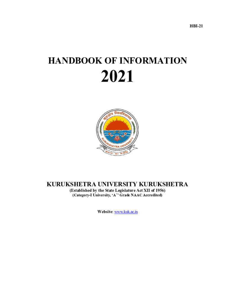 HBI21HANDBOOK OF INFORMATION2021KURUKSHETRA UNIVERSITY KURUKSHETRA (Established by the State Legislature Act XII of 1956) (Category University, A+ Grade NAACP Accredited)Website: www.kuk.ac.inVISION