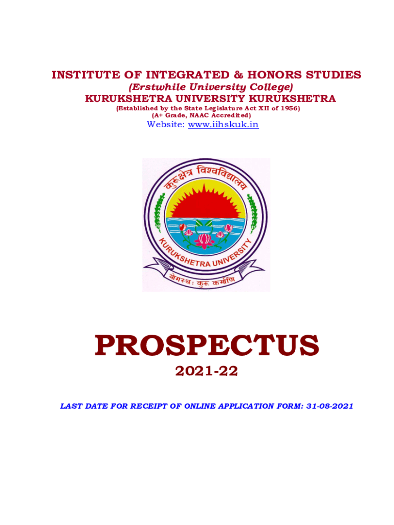 INSTITUTE OF INTEGRATED & HONORS STUDIES (Erstwhile University College) KURUKSHETRA UNIVERSITY KURUKSHETRA (Established by the State Legislature Act XII of 1956) (A+ Grade, NAACP Accredited)Website: