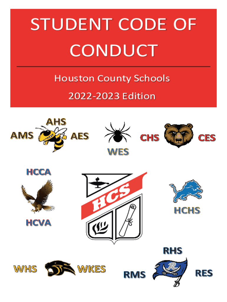 STUDENT CODE OF CONDUCT Houston County Schools 20222023 EditionPrincipal Mr. Darren Stewart Assistant Principal Mr. Randy Meadows Guidance Counselor Ms. Cambria McArdle Address 663 Houston Street