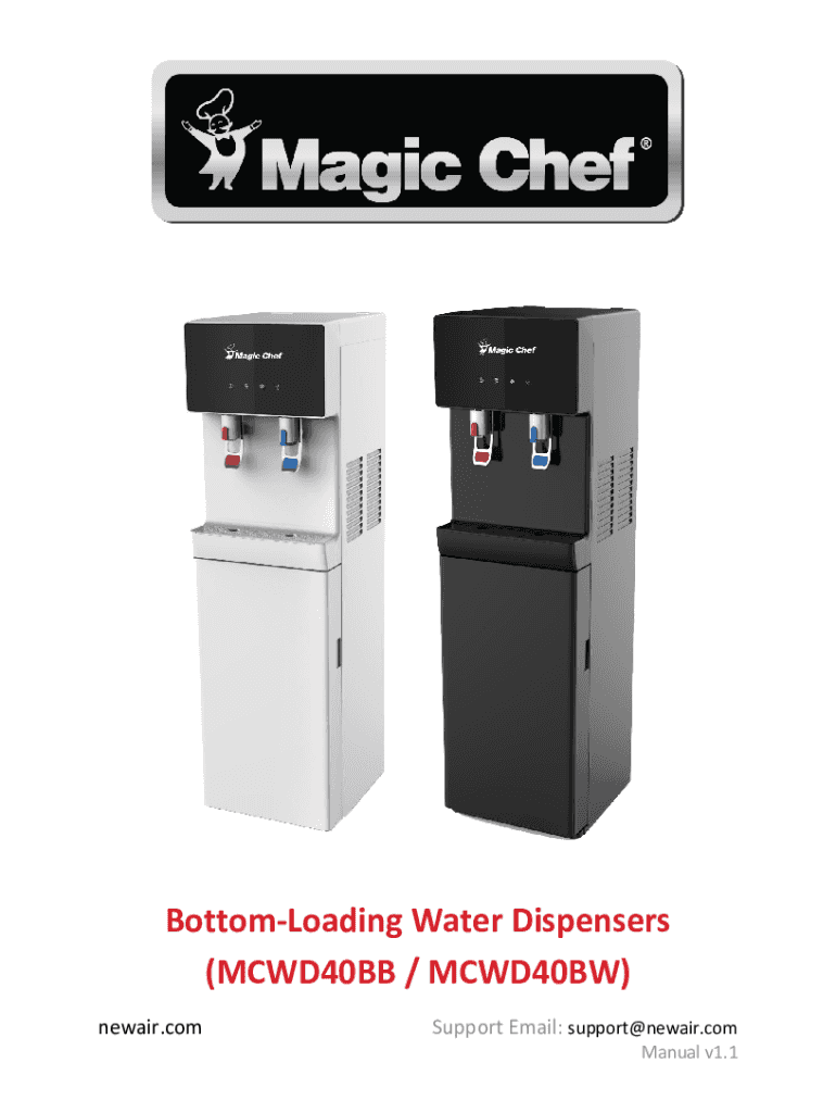 BottomLoading Water Dispensers (MCWD40BB / MCWD40BW) newer. Nonsupport Email: support@newair.comManual v1.1Magic Chef Water Dispenser Product GuideIntroduction Please observe the regulations and laws