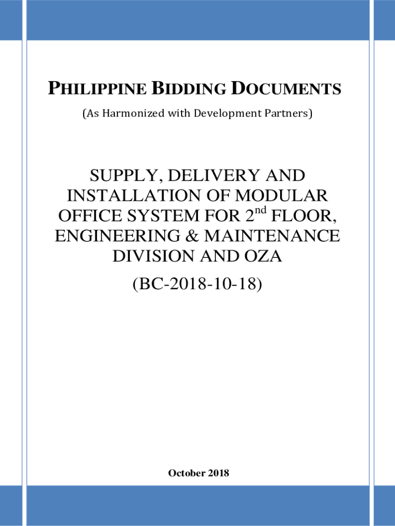 PHILIPPINE BIDDING DOCUMENTS (As Harmonized with Development Partners)SUPPLY, DELIVERY AND INSTALLATION OF MODULAR OFFICE SYSTEM FOR 2nd FLOOR, ENGINEERING & MAINTENANCE DIVISION AND OZ (BC20181018)October
