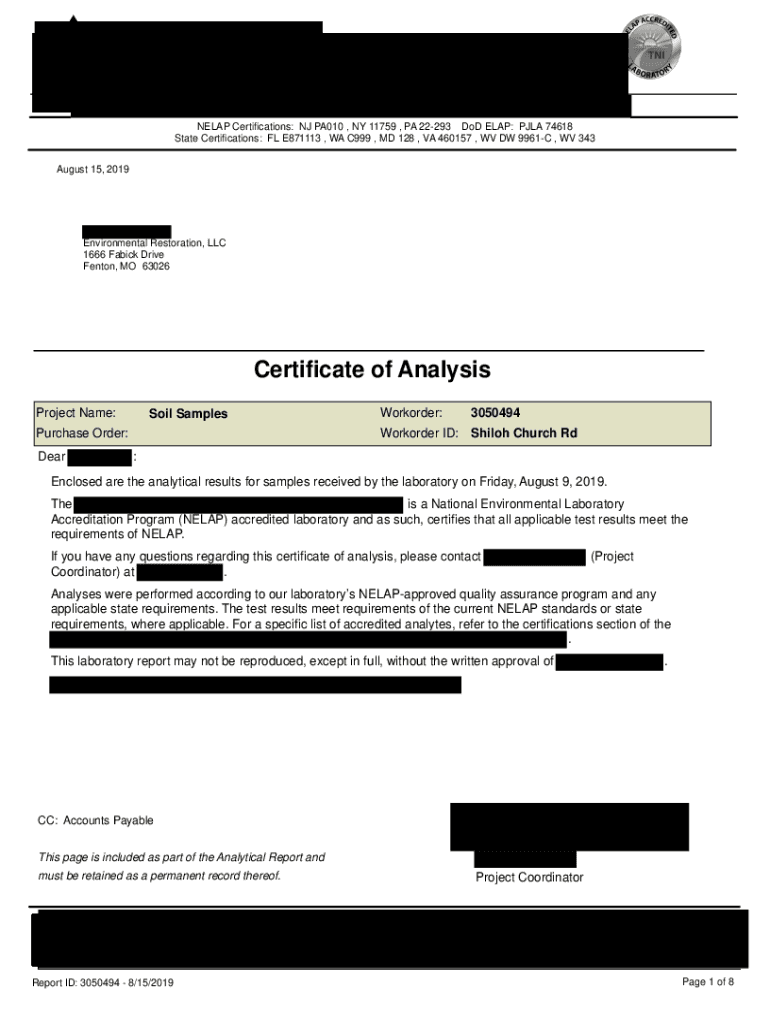 Get the free REDACTED 8/8/19 ANALYTICAL SOIL SAMPLE REPORT