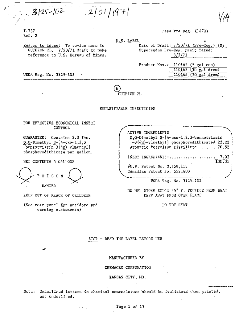 )/ 1\'737 Ref. 2Base Prefer. (1470)u.s. Reason to Issue:Labelmate of Draft: 7/20/7 1 (Prefer.) Supersedes Prefer. Draft Dated: 3/2/71\” _ _ _ _ _ __To revise name solution 2L. 7/20/71 draft to make