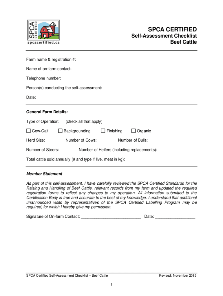 Go to the website spcabccawp-contentuploadsspca and locate the certified self-assessment checklist.