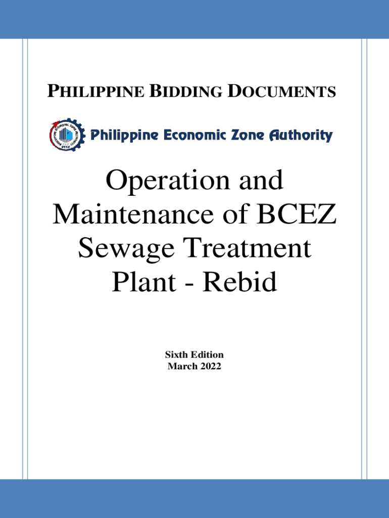 PHILIPPINE BIDDING DOCUMENTS Philippine Economic Zone AuthorityOperation and Maintenance of BAEZ Sewage Treatment Plant Rebid Sixth Edition March 20220Preface These Philippine Bidding Documents (Pads)