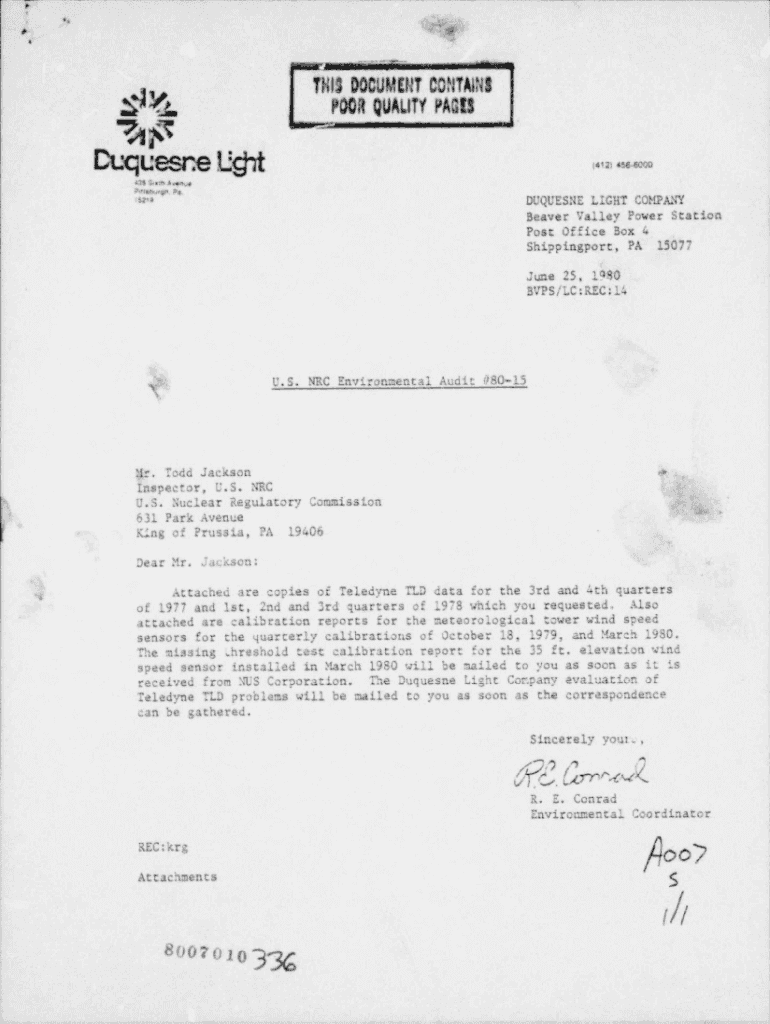 .PW|, _ _ _ _ _._THl2 DOCUMENT 00NTAmtYYL,P00R Quality Parts\'APcuquesneup. . . . , _::: *\'\'DUQUESNE LIGHT COMPANYBeaver Valley Power Station Post Office Box 4 Shipping port, PA 15d77 \'June 25,