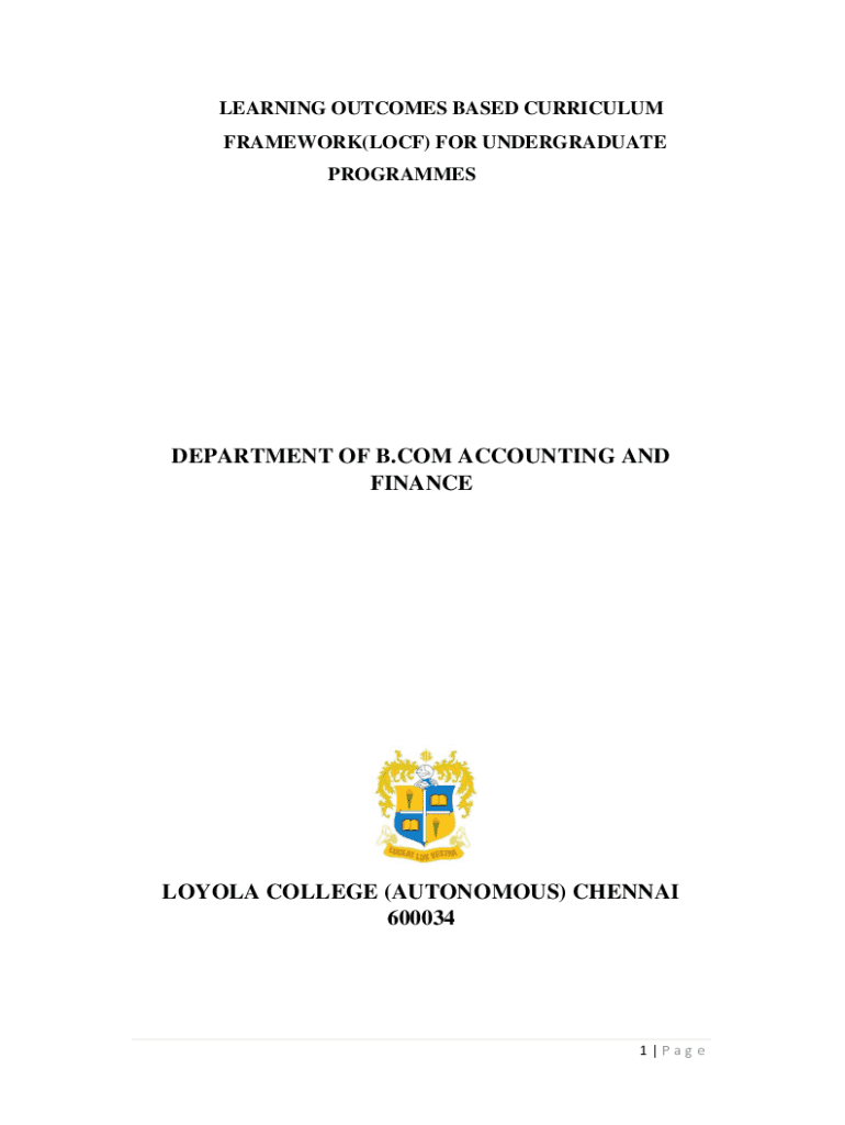 LEARNING OUTCOMES BASED CURRICULUM FRAMEWORK(LOCK) FOR UNDERGRADUATE PROGRAMMESDEPARTMENT OF B.COM ACCOUNTING AND FINANCELOYOLA COLLEGE (AUTONOMOUS) CHENNAI 6000341|PagePREFACE The fundamental aspect