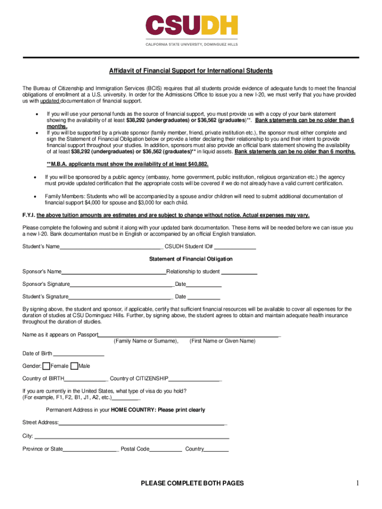 Get the free Affidavit of Financial Support for International Students