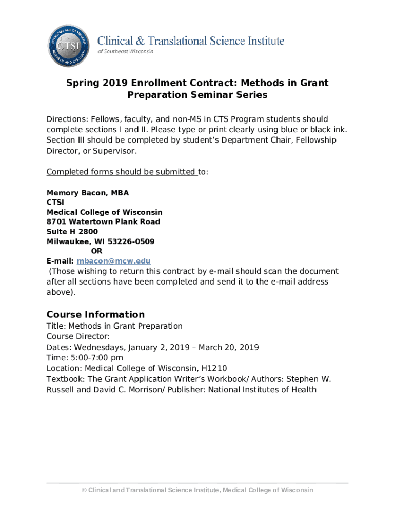 The NIH Regional Seminars on Program Funding and Grants Administration - ctsi mcw is a document that should be submitted to the relevant address in order to provide some info. It needs to be filled-out and signed, which is possible in hard copy, or with a certain solution such as PDFfiller. This tool allows to complete any PDF or Word document directly from your browser (no software requred), customize it according to your purposes and put a legally-binding electronic signature. Once after completion, you can easily send the NIH Regional Seminars on Program Funding and Grants Administration - ctsi mcw to the relevant recipient, or multiple individuals via email or fax. The blank is printable as well from PDFfiller feature and options offered for printing out adjustment. Both in digital and physical appearance, your form will have got organized and professional look. Also you can turn it into a template to use later, there's no need to create a new document from scratch. You need just to edit the ready document.