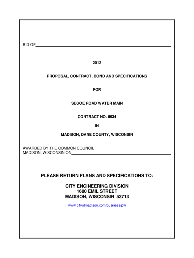 BID OF2012PROPOSAL, CONTRACT, BOND AND SPECIFICATIONSFORSEGOE ROAD WATER BANCONTACT NO. 6934