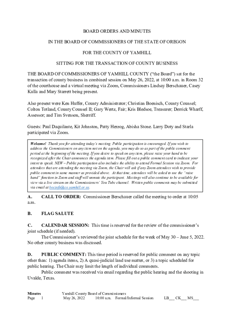 Get the free YAMHILL COUNTY BOARD OF COMMISSIONERS A G E N D A - ACTION LIST