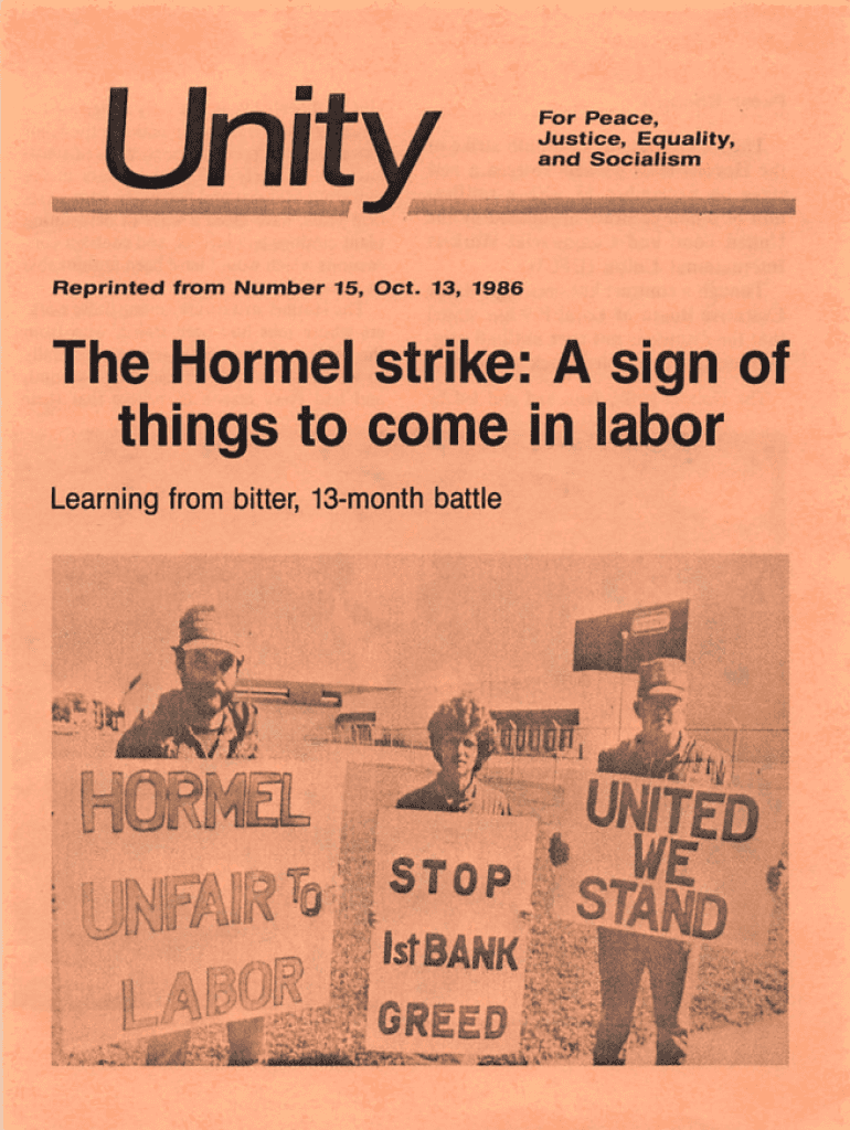 I I I M July\'equality, ^andSocialismmmummmama^am ^ lii\' i NIR m\' i itiaaMiiMM Reprinted from Number 15, Oct. 13, 1986The Hormel strike: A sign of things to come in labor Learning from bitter, 13month
