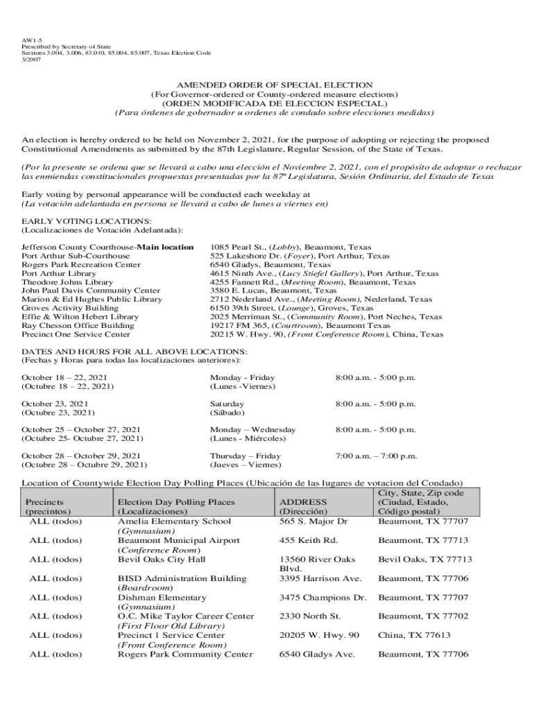 3/2007AMENDED ORDER OF SPECIAL ELECTION