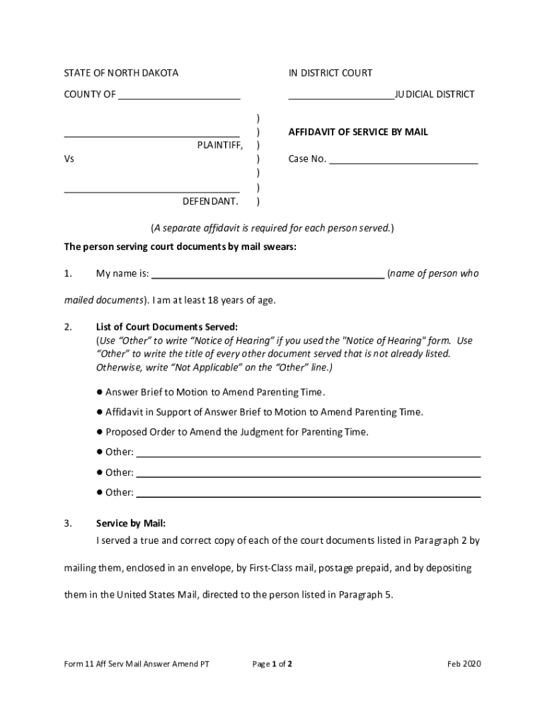 STATE OF NORTH DAKOTAN DISTRICT COURTEOUSLY OF ______JUDICIAL DISTRICT___