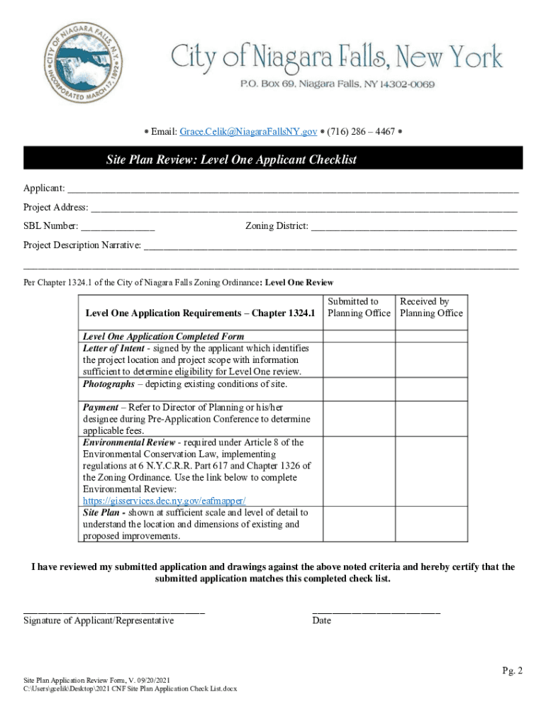 THE CITY OF NIAGARA FALLS APPLICATION PACKET & REVIEW PROCEDURE LEVEL ONE SITE PLAN REVIEW PACKET This Application Packet includes the following 1. 2. Introduction to Level One Site Plan Review Process