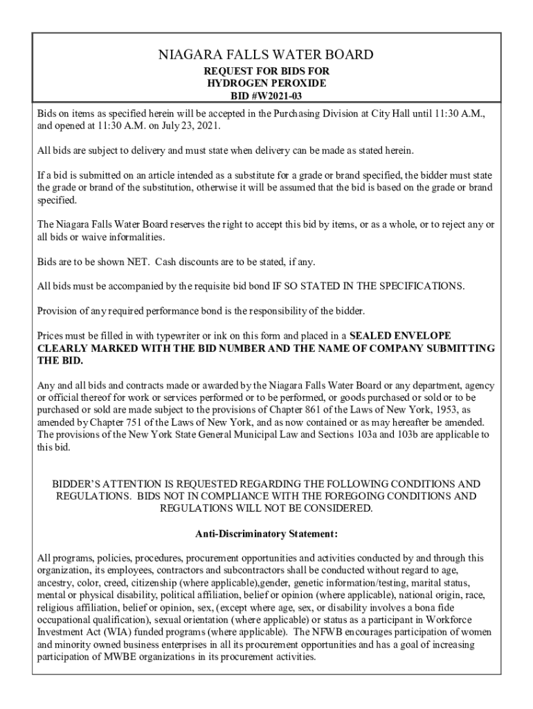 Get the free niagarafallsusa.orgwpfb-filenfwb-bid-w2021-03NFWB BID #W2021-03 Hydrogen PeroxideNia...