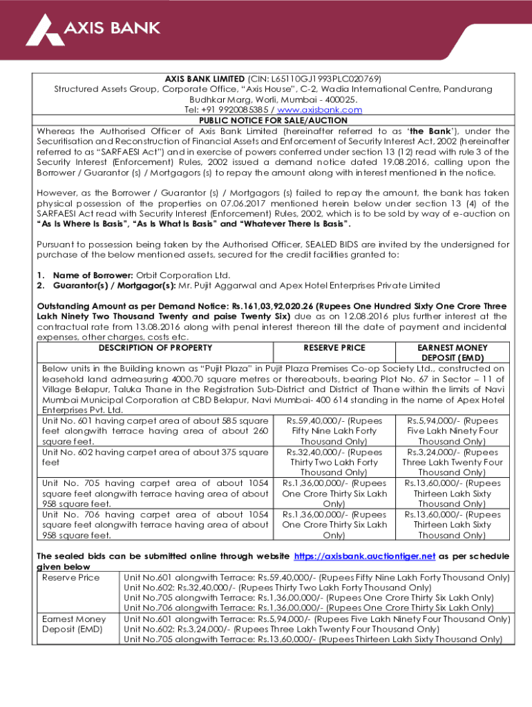 Fill out your auction-notice-corporate-cbd-belapur-orbit-tender - axis bank online with pdfFiller!