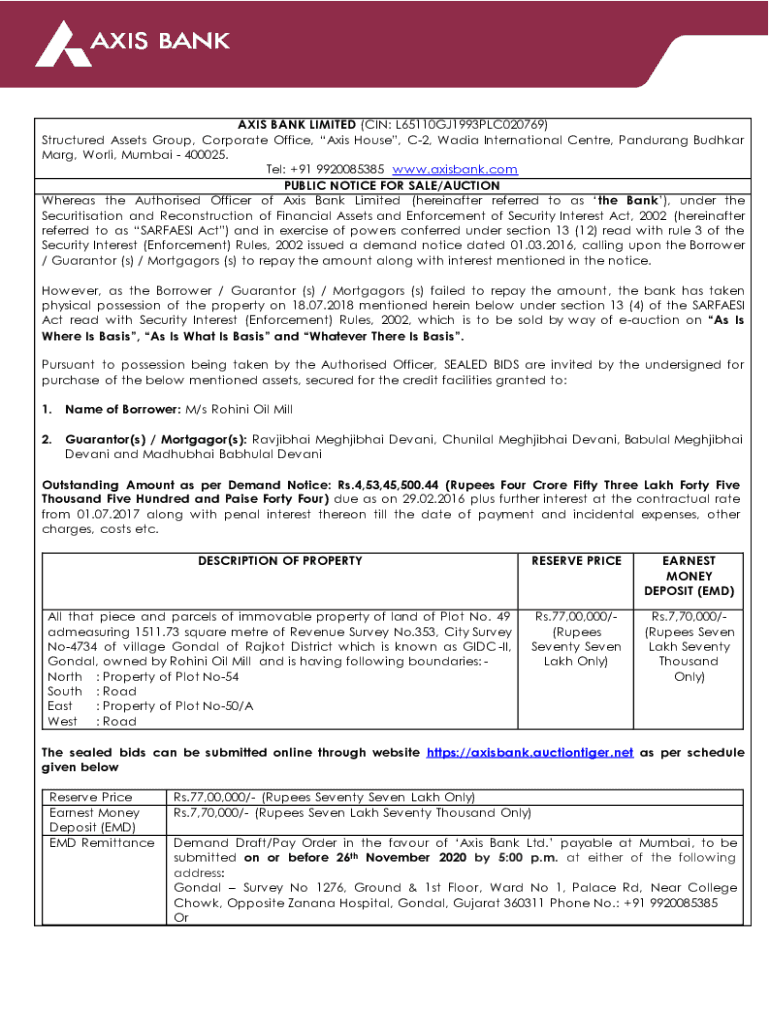 Get the free auction-rohini-oil-mill-gondal-of-rajkot.pdf - Axis Bank
