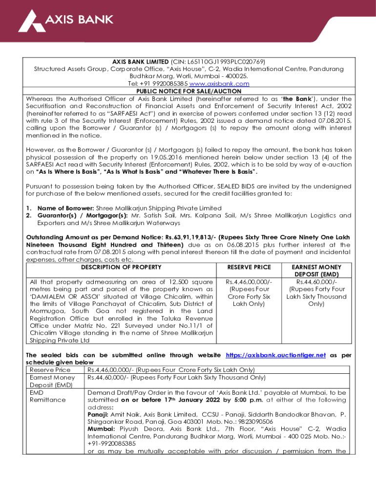 Get the free (hereinafter referred to as SARFAESI Act) and in exercise of powers conferred under ...