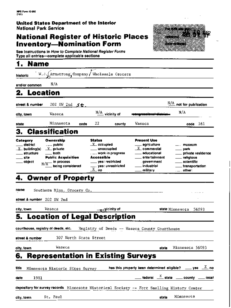 NFS Form 10900 (781)United States Department off the International Park ServiceNational Register of Historic Places InventoryNomination Form See instructions in How to Complete National Register Forms