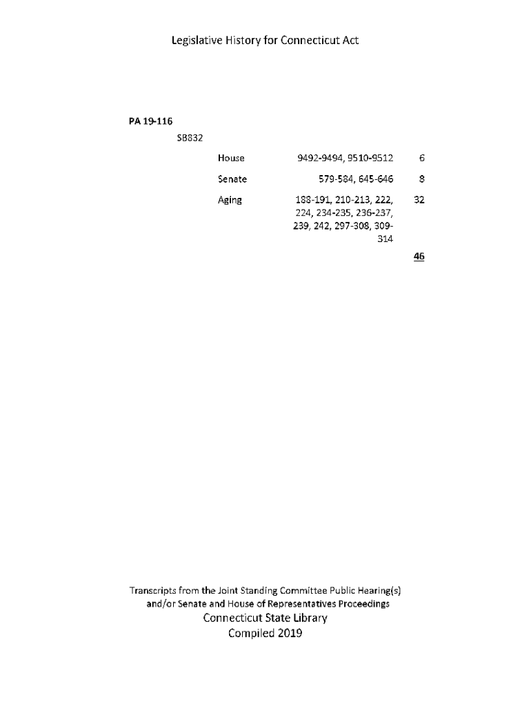 Legislative History for Connecticut ACIPA 19116SB832 House94929494, 951095126Senate579584, 6456468188191, 210213, 222, 224, 234235, 236237, 239,242,297308,30931432Aging46Transcripts from the Joint