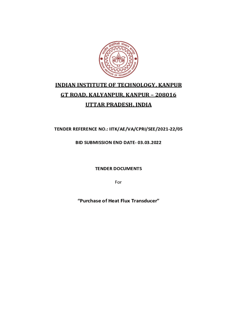 INDIAN INSTITUTE OF TECHNOLOGY, KANPUR GT ROAD, KANPUR, KANPUR 208016 UTTAR PRADESH, INDIATENDER REFERENCE NO.: IIT/AE/VA/CPI/SEE/202122/05 BID SUBMISSION END DATE 03.03.2022TENDER DOCUMENTS Purchase