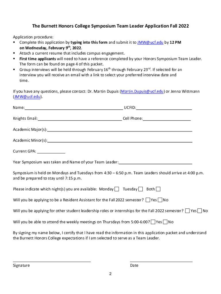 2022TeamLeaderProgramApplicationPacket HonorsSymposiumisdesignedtoassistnewHonorsstudentsinfosteringasenseofhonorscommunityand identity, inmakingcampusconnections, andindevelopingprofessionalskillsandvalues.