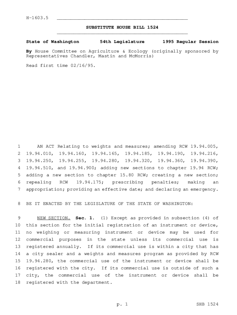 Get the free H-1603.5 SUBSTITUTE HOUSE BILL 1524