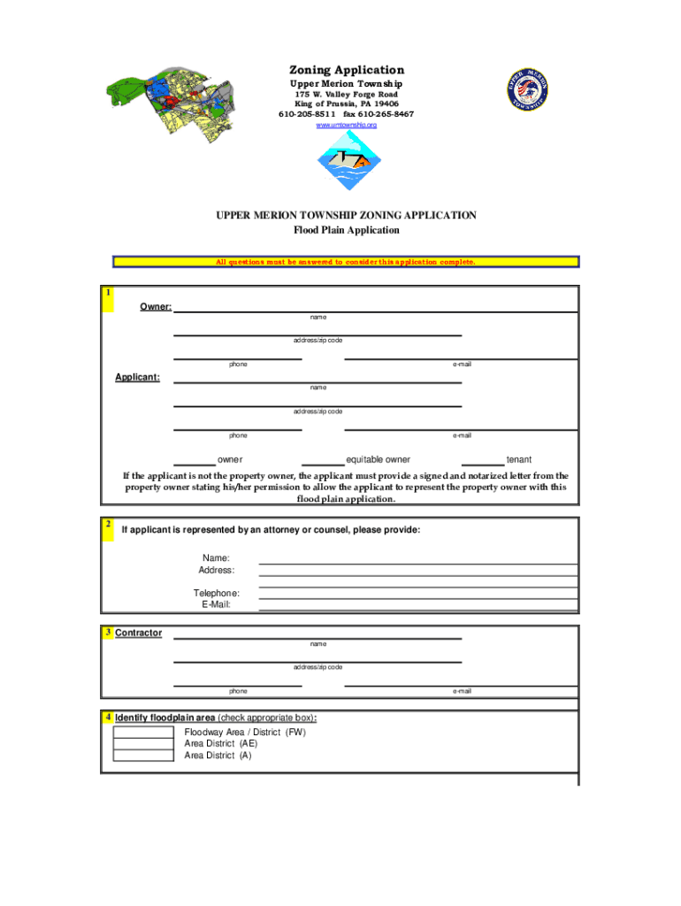Zoning Application Upper Marion Township 175 W. Valley Forge Road King of Prussia, PA 19406 6102058511 fax 6102658467 www.umtownship.orgUPPER MARION TOWNSHIP ZONING APPLICATION Flood Plain Application
