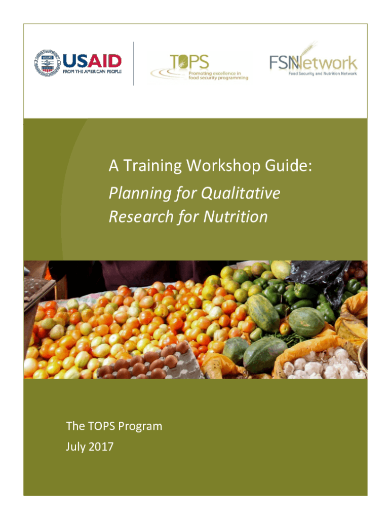 A Training Workshop Guide: Planning for Qualitative Research for Nutrition TOPS Program July 2017 Appendix j1A Training Workshop Guide:Planning for Qualitative Research for Nutrition July 2017The