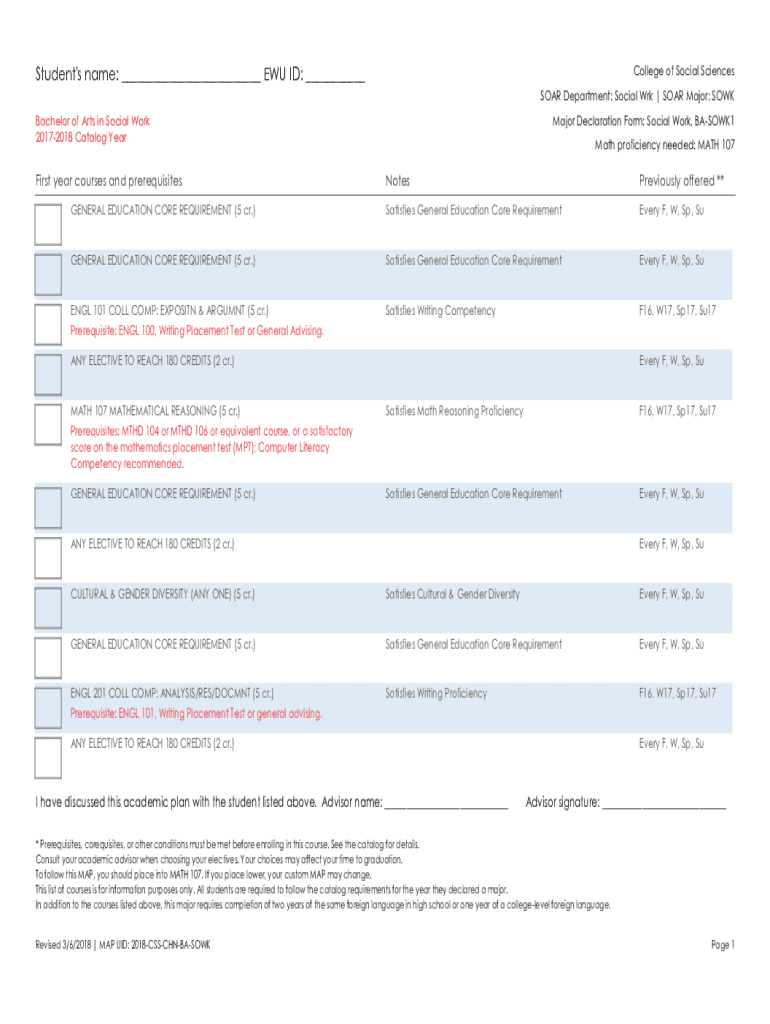 20172018 Catalog Headfirst year courses and prerequisites Major
