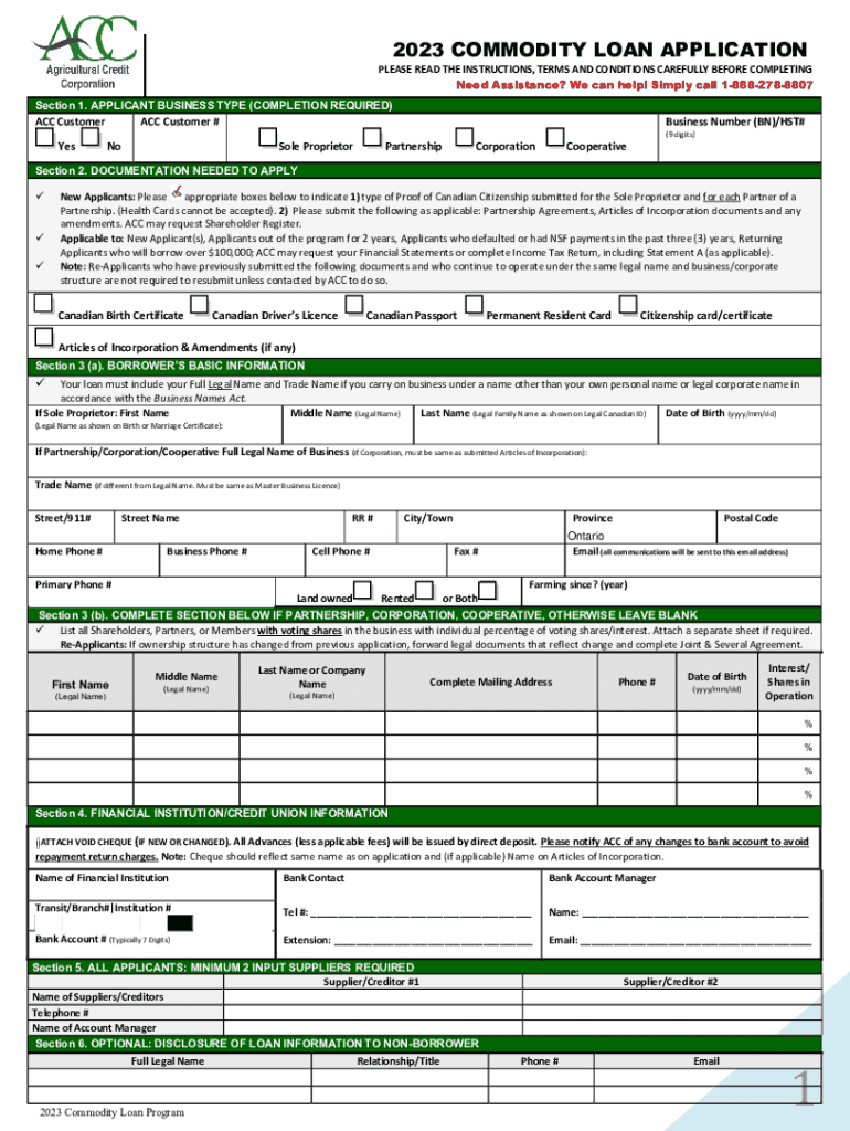 2023 COMMODITY LOAN APPLICATIONPLEASE READ THE INSTRUCTIONS, TERMS AND CONDITIONS CAREFULLY BEFORE COMPLETING