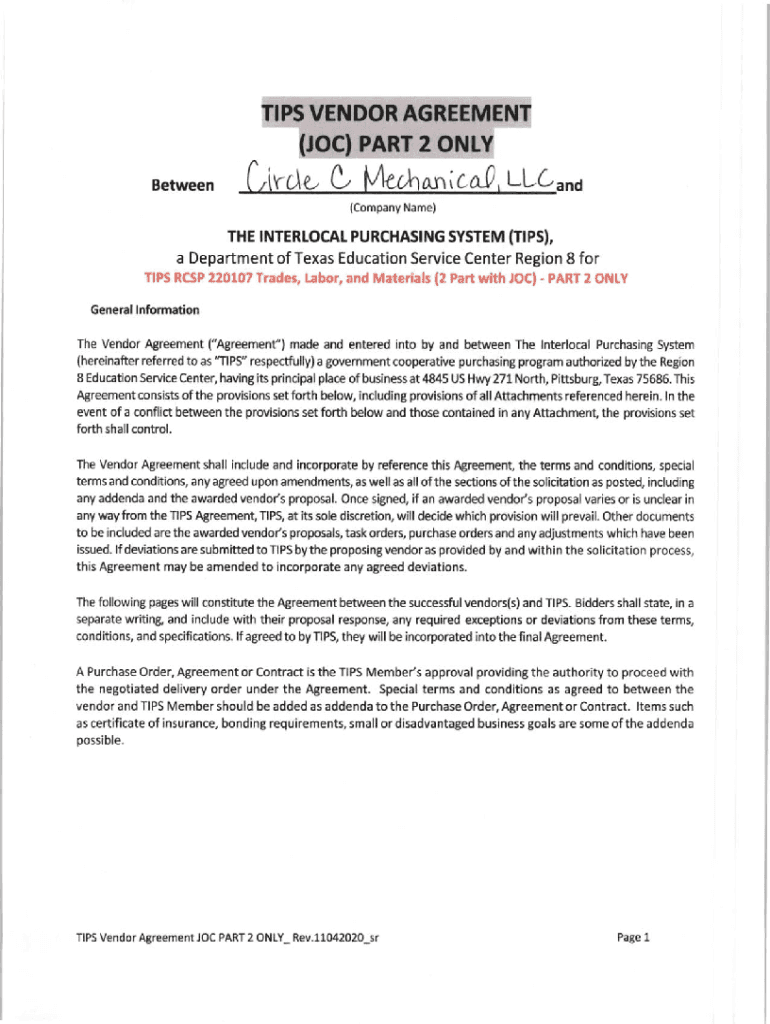 David Fits Executive Director4/28/2022NOTICE TO MEMBERS REGARDING ATTRIBUTE RESPONSES TIPS VENDORS RESPOND TO ATTRIBUTE QUESTIONS AS PART OF TIPS COMPETITIVE SOLICITATION PROCESS. THE VENDORS RESPONSES