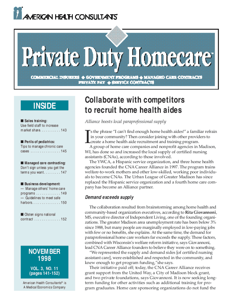 INSIDE Sales training: Use field staff to increase market share. . . . . . . . . . . 143 Perils of pediatrics: Tips to manage chronic care cases. . . . . . . . . . . . . . . . 145 Managed care contracting: