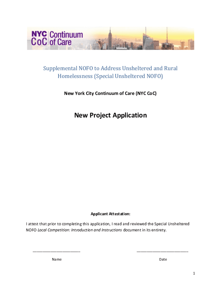 Supplemental NO FO to Address Sheltered and Rural Homelessness (Special Sheltered NO FO) New York City Continuum of Care (NYC COC)New Project ApplicationApplicant Attestation: I attest that prior