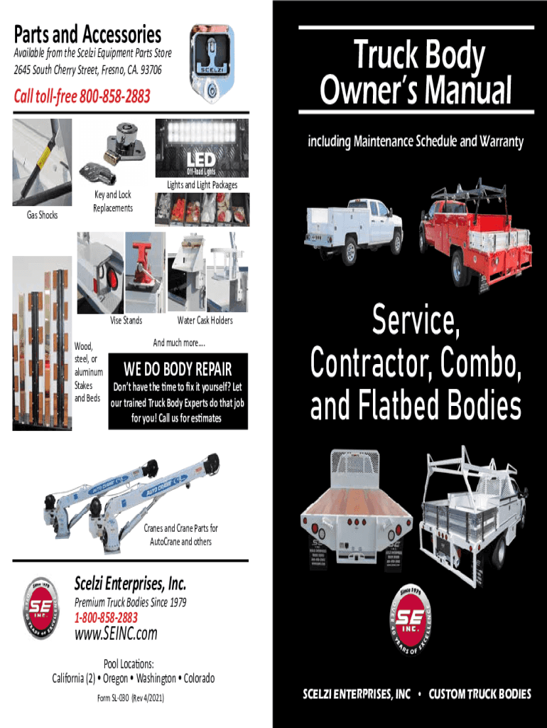 Parts and Accessories Available from the Scale Equipment Parts Starstruck Body Owners Manual2645 South Cherry Street, Fresno, CA. 93706Call toll-free 8008582883including Maintenance Schedule and Warrants