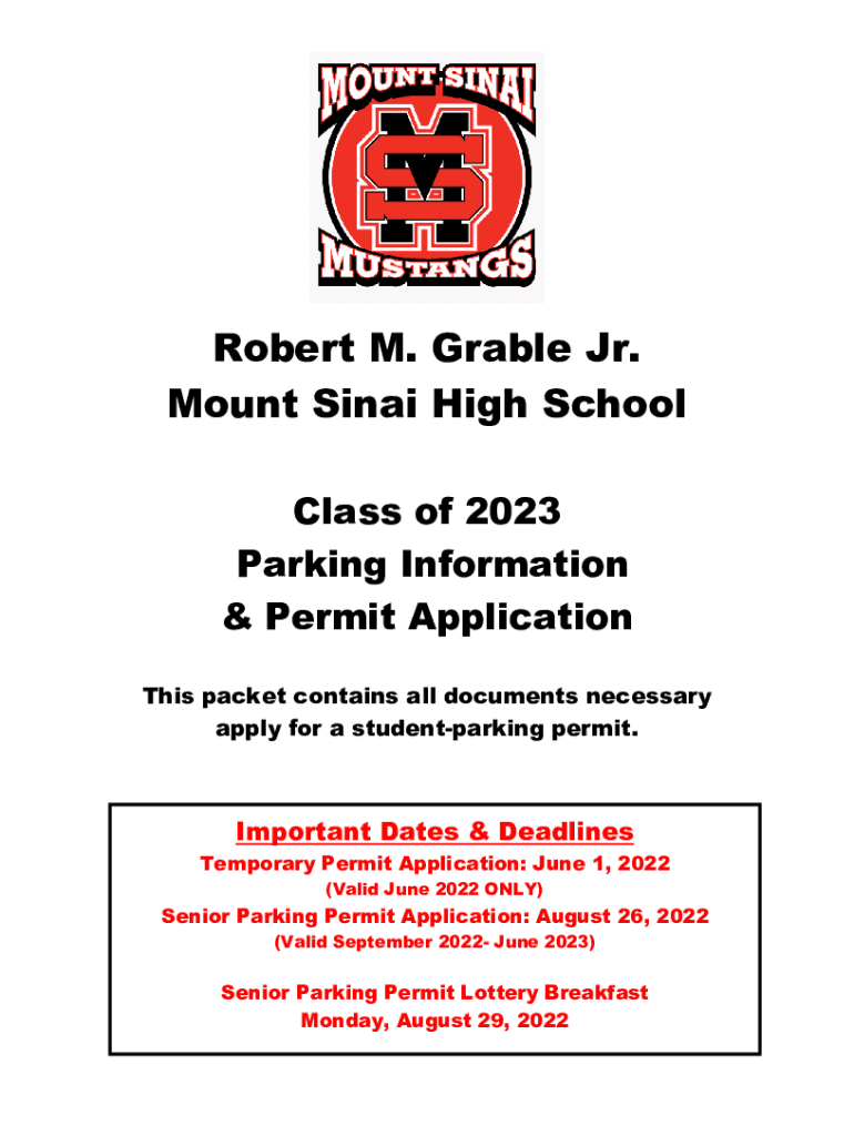 Robert M. Grable Jr. Mount Sinai High School Class of 2023 Parking Information & Permit Application This packet contains all documents necessary apply for a student parking permit. Important Dates