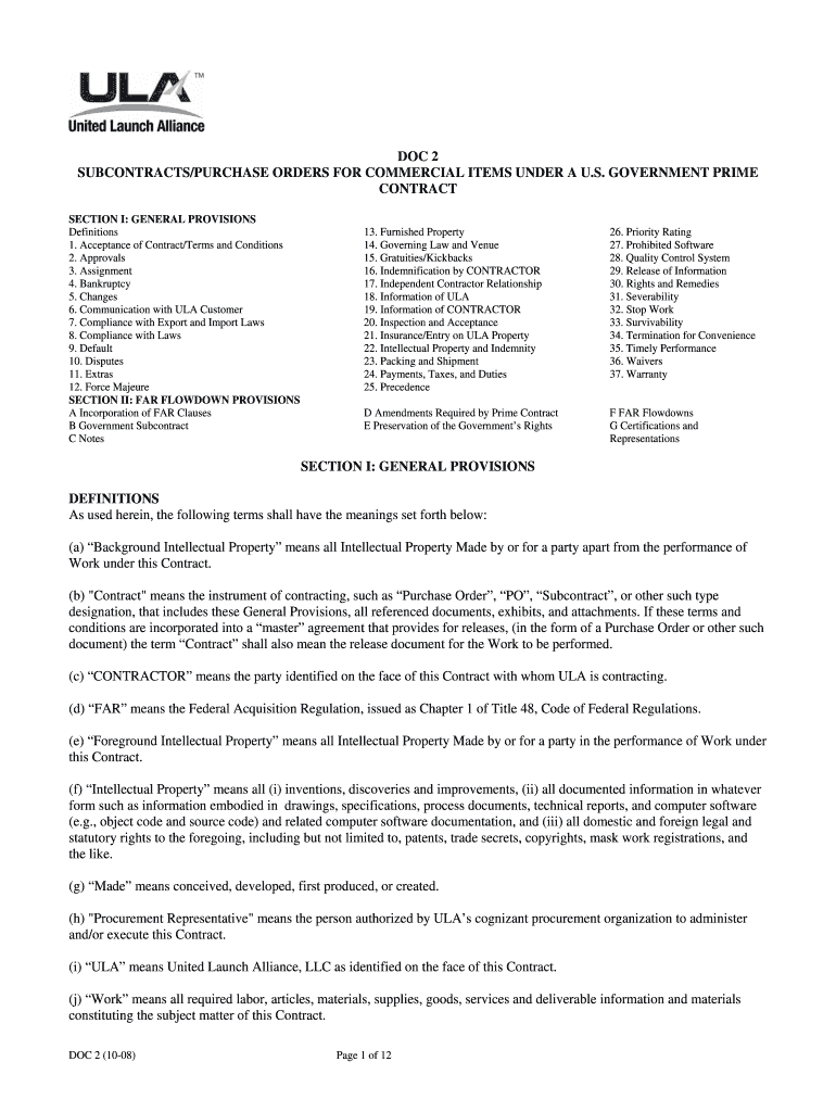 SUBCONTRACTS/PURCHASE ORDERS FOR COMMERCIAL ITEMS UNDER A U.S. GOVERNMENT PRIME