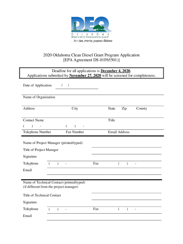 Get the free Oklahoma Clean Diesel (DERA) Program - Oklahoma Department of ...