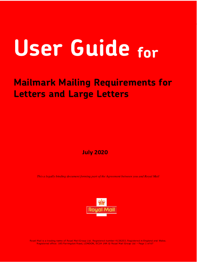 User GuideforMailmark Mailing Requirements for Letters and Large Letters July 2020This a legally binding document forming part of the Agreement between you and Royal Mail is a trading name of Royal