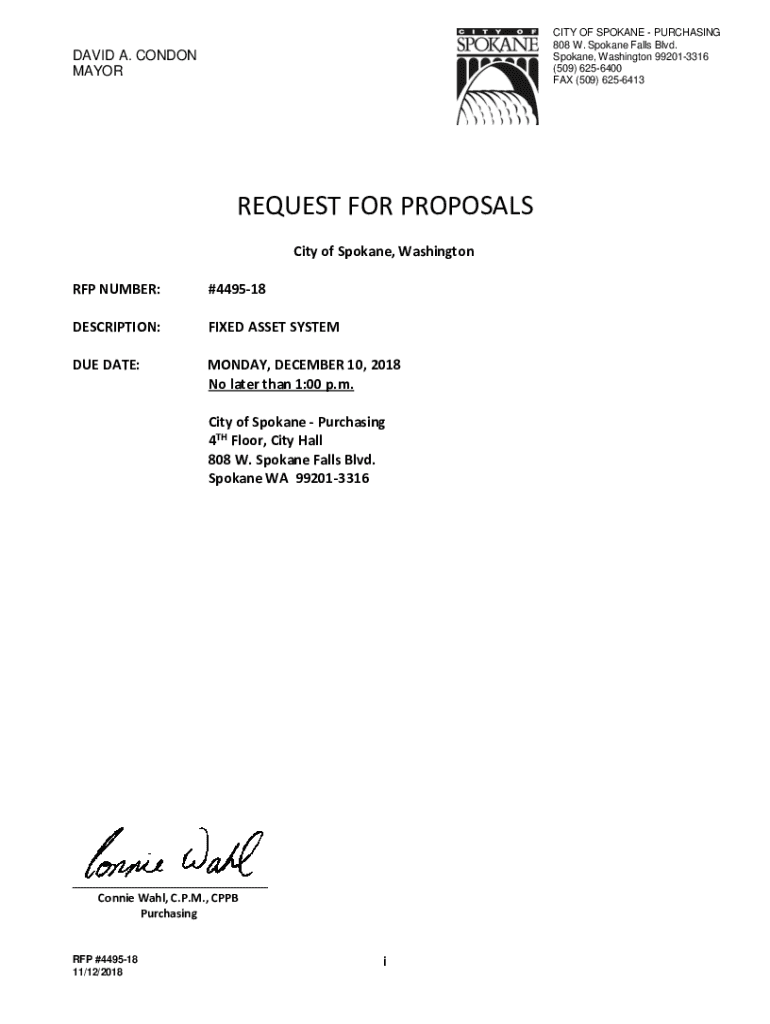 Get the free RFP #4495-18 Fixed Asset System - City of Spokane