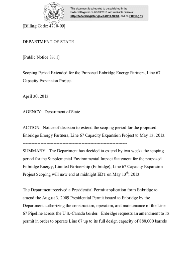 Get the free Billing Code: 4710-09 DEPARTMENT OF STATE Scoping Period Extended for ...