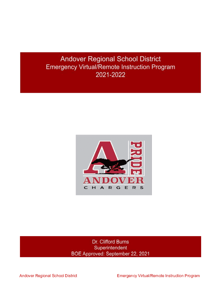 Get the free Andover Regional Chapter 27 Emergency Virtual/Remote Instruction Program 2021-2022 SY