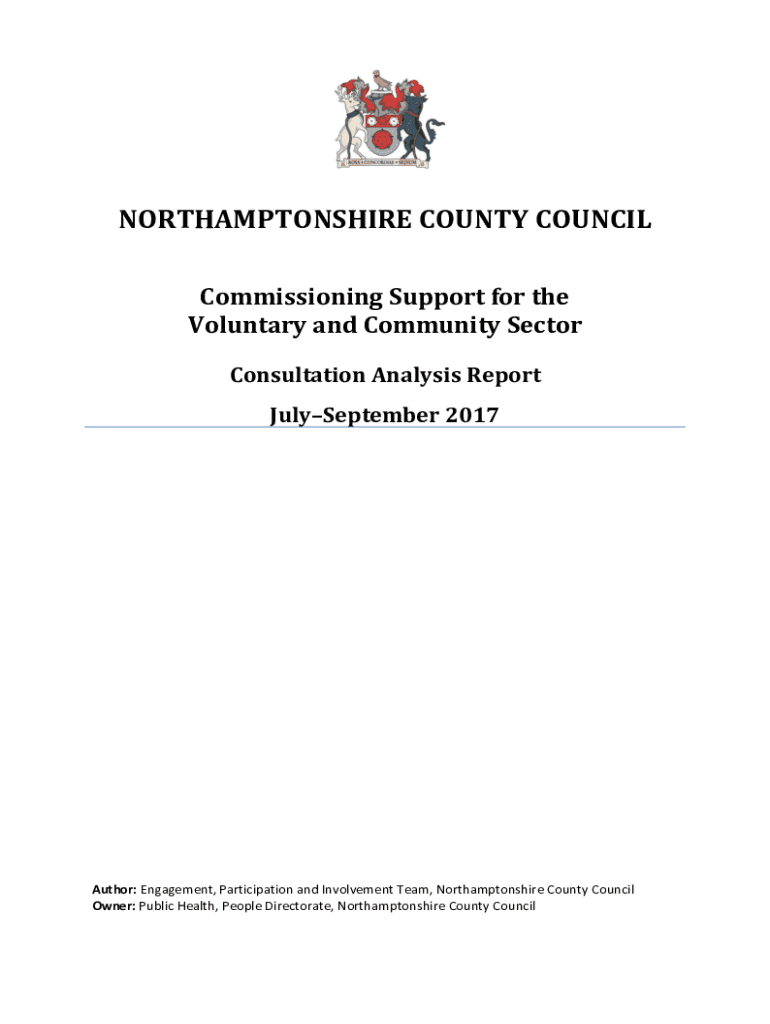 NORTHAMPTONSHIRE COUNTY COUNCIL Commissioning Support for the Voluntary and Community Sector Consultation Analysis Report July September 2017Author: Engagement, Participation and Involvement Team,