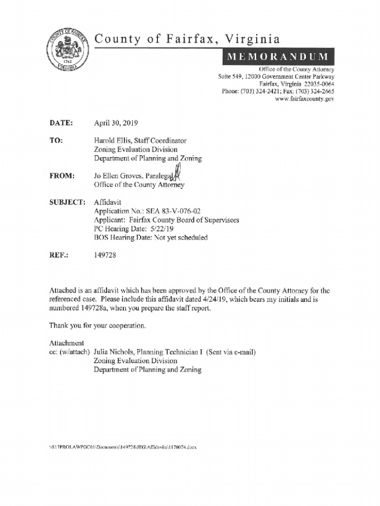County of Fairfax, Virginia MEMORANDUM Office of the County Attorney Suite 549, 12000 Government Center Parkway Fairfax, Virginia 220350064 Phone: (703) 3242421; Fax: (703) 3242665 www.fairfaxcounty.govDATE:April