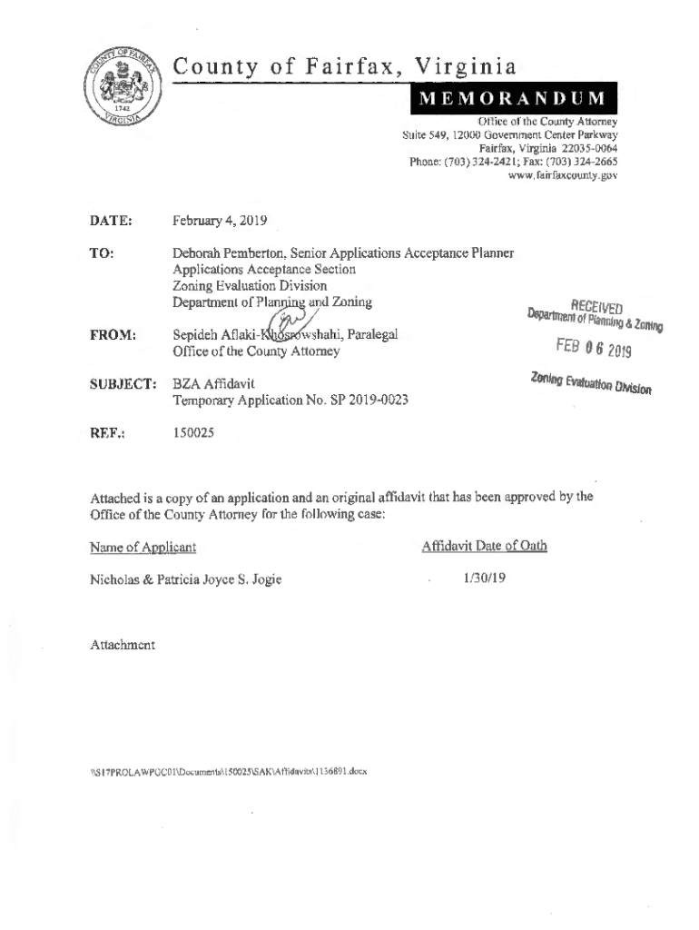 County of Fairfax, Virginia I I i# ii+ .1941Office of the County Attorney Suite 549, 12000 Government Center Parkway Fairfax, Virginia 220350064 Phone: (703) 3242421 ; Fax: (703) 3242665 www.fairfaxcounty.ovate:February