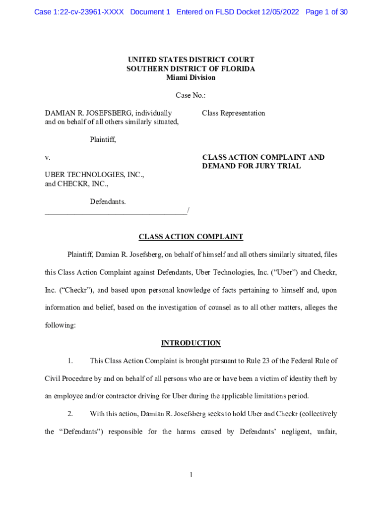Get the free Josefsberg et al v. Uber Technologies, Inc. et al - 1